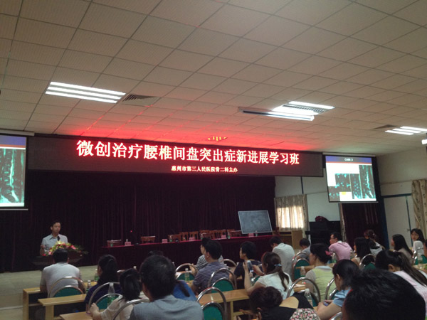 學(xué)習(xí)班特別邀請(qǐng)到了中山大學(xué)孫逸仙紀(jì)念醫(yī)院李春海教授、廣東省中醫(yī)院陳博來(lái)教授及惠州市中心醫(yī)院黃玉良副院長(zhǎng)進(jìn)行現(xiàn)場(chǎng)授課,重點(diǎn)介紹腰椎間盤(pán)突出癥的微創(chuàng)治療新技術(shù):如椎間盤(pán)鏡、靶點(diǎn)射頻結(jié)合臭氧消融等。(科教部 袁學(xué)武)
