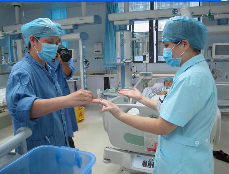 為提高我院對(duì)醫(yī)院感染暴發(fā)組織指揮、快速響應(yīng)及處置能力,加強(qiáng)各部門之間協(xié)調(diào)配合,最大限度地降低醫(yī)院感染對(duì)患者造成的危害,保障醫(yī)療安全, 2013年6月21日在醫(yī)院感染管理委員會(huì)主任何小慧的主持下,院感部聯(lián)合醫(yī)務(wù)部、護(hù)理部、后勤保障部、微生物實(shí)驗(yàn)室等科室在ICU病區(qū)舉行了“醫(yī)院感染暴發(fā)應(yīng)急處置演練”。