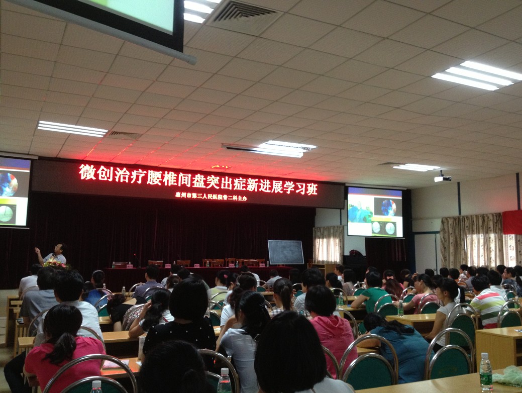 68,市級繼續(xù)醫(yī)學(xué)教育項目“微創(chuàng)治療腰椎間盤突出癥新進(jìn)展學(xué)習(xí)班”在我院多功能會議室隆重舉行。本次學(xué)習(xí)班班共吸引了市、縣各級醫(yī)療單位醫(yī)務(wù)人員共計300余人參加。