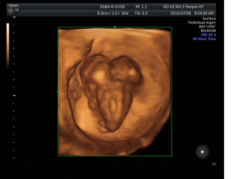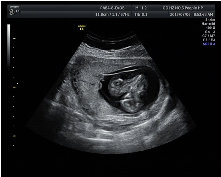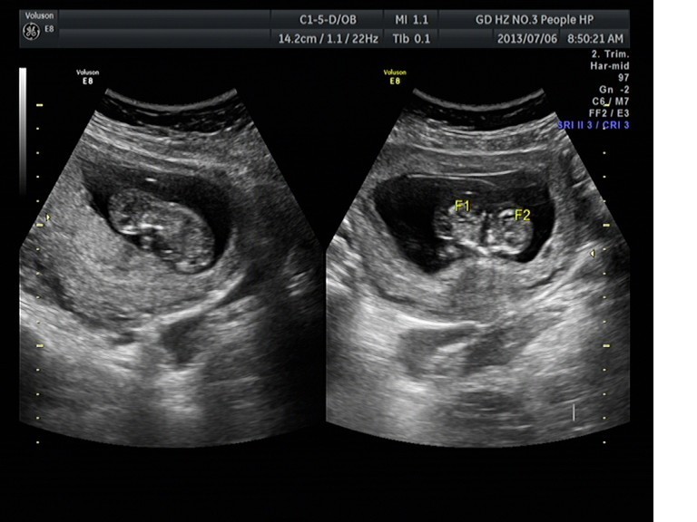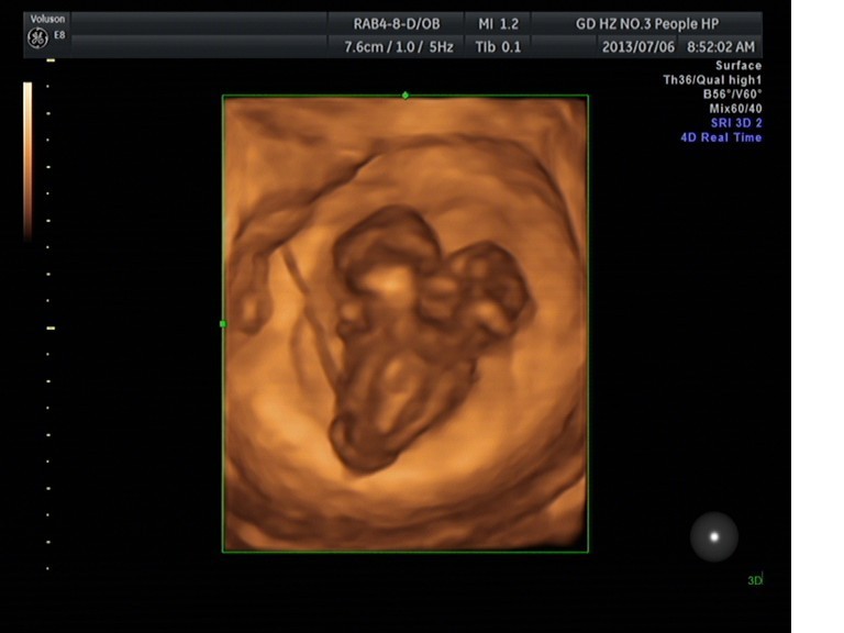 隨著環(huán)境污染日益嚴重,隨著各種地溝油的誕生,隨著各樣鎘大米的泛濫……我們的健康越來越受到威脅,很多疾病也隨之接踵而至,胎兒先天性疾病也越來越多見。7月6日,我院超聲科王瑤醫(yī)生在做胎兒產(chǎn)前NT篩查中發(fā)現(xiàn)一例孕約11周+的聯(lián)體雙胎。超聲所見:增大的子宮內(nèi)可見聯(lián)體雙胎兒回聲,可見兩個胎頭不能分離,胸部及腹部融合,可見一個增大的心臟。