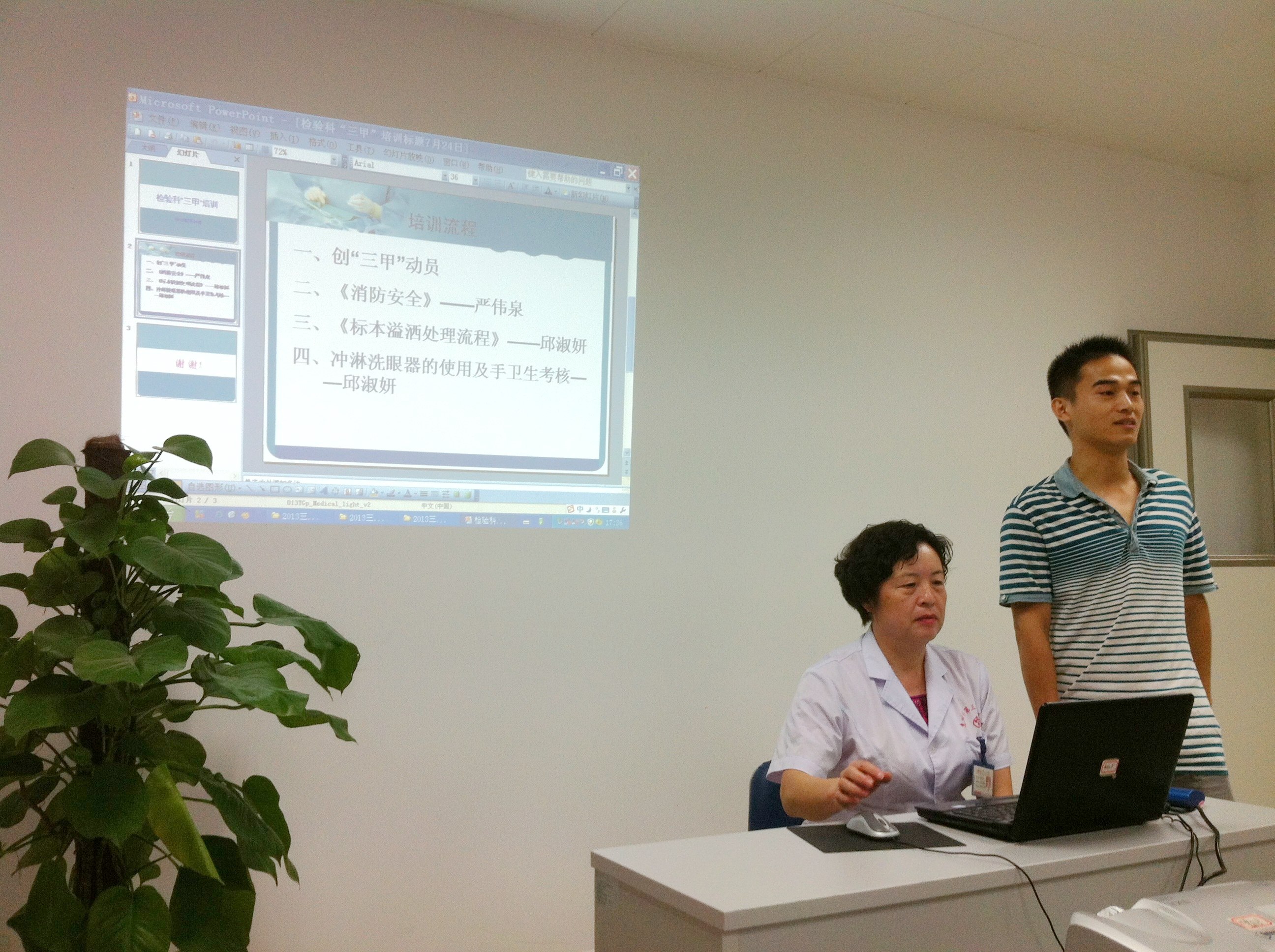7月24日下午,醫(yī)學(xué)檢驗(yàn)科全體同仁在示教室舉行了創(chuàng)“三甲”培訓(xùn)課,培訓(xùn)內(nèi)容為創(chuàng)“三甲”動(dòng)員大會(huì)、手衛(wèi)生及消防安全。