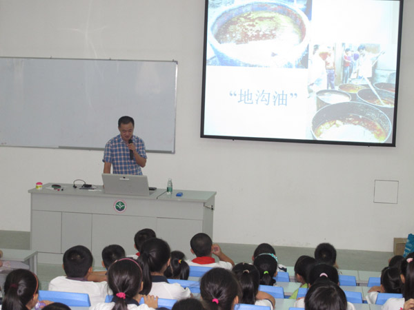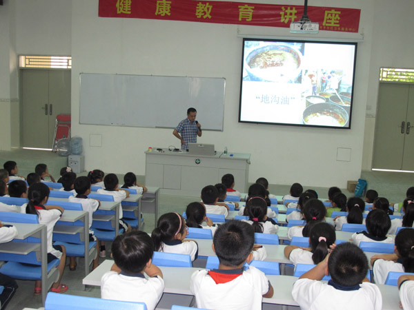鑒于校園周邊黑“零食”問(wèn)題日益泛濫,我院急診科葉恒醫(yī)生應(yīng)龍豐社區(qū)衛(wèi)生服務(wù)中心邀請(qǐng),于16日到十一小分校為小學(xué)生們做《食品安全與衛(wèi)生》的宣教。講座中層層深入的列舉了學(xué)校周邊販賣的花樣繁多的黑零食,總結(jié)了它們?nèi)f變不離其中的危害性,最后通過(guò)央視暗訪黑零食加工過(guò)程的視頻,給孩子們展示了什么叫做觸目驚心。
