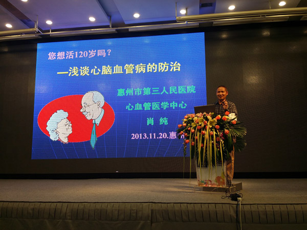 11月20日晚,旭日集團(tuán)的多功能會議廳燈火通明,近五百名員工濟(jì)濟(jì)一堂,利用下班時間來參加由三院心血管醫(yī)學(xué)中心肖純博士主講的《您想活120歲嗎?——淺談心血管病的防治》。相信大家在預(yù)報名環(huán)節(jié)都不同程度得被講座的主題所吸引,肖純博士正是圍繞著這一主題,對心血管病的防治娓娓道來。