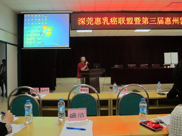 2013年11月2日下午,在我院在多功能會議室順利舉行深莞惠乳腺癌聯(lián)盟暨第三屆惠州乳腺癌診治進展學習班,會議特邀了深圳大學第一附屬醫(yī)院乳腺科王先明教授,深圳市人民醫(yī)院腫瘤研究所王樹濱教授,東莞市人民醫(yī)院乳腺科張愛玲教授,惠州市中心醫(yī)院乳腺科彭偉強教授前來授課,本次大會由我院乳腺科張樹平教授擔任,我院乳腺影像中心盛潔主治醫(yī)師也做了精彩授課。我院工會主席何小慧代表醫(yī)院對遠道而來的教授表示熱烈歡迎。