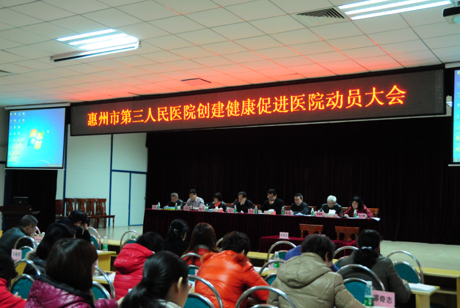 根據(jù)省衛(wèi)生和計劃生育委員會制定的《2013年中央補助創(chuàng)建健康促進醫(yī)院試點項目廣東省方案》,惠市衛(wèi)函【2013】630號關(guān)于召開2013年中央補助健康促進醫(yī)院惠州市項目啟動會的通知,我院將深入開展創(chuàng)建“健康促進醫(yī)院”工作,并將在年今年3至4月迎接市衛(wèi)生局和市健康教育所督導(dǎo)檢查,5至6月參觀交流學(xué)習(xí)其他五家創(chuàng)建醫(yī)院(惠州市中心人民醫(yī)院、惠州市中醫(yī)醫(yī)院、惠州市第一婦幼保健院、惠州市第一人民醫(yī)院、惠陽區(qū)人民醫(yī)院)先進經(jīng)驗,最后在7至8月迎接省衛(wèi)生和計劃生育委員會專家組考核。