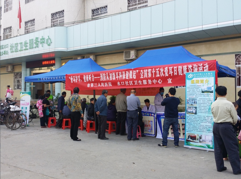 全球有3.6億聽力殘疾人,占總?cè)丝诘?.3%,而聽力殘疾中50%可通過初級(jí)耳科保健加以預(yù)防和避免。為迎接全國(guó)第15個(gè)愛耳日的到來,大力宣傳初級(jí)耳科保健在聽力殘疾預(yù)防中的重要性和必要性,惠州市第三人民醫(yī)院耳鼻咽喉-頭頸外科王豪主任攜醫(yī)療團(tuán)隊(duì)來到水口鎮(zhèn)老街,與水口社區(qū)衛(wèi)生服務(wù)中心一同為老街居民免費(fèi)檢查耳朵及聽力情況。