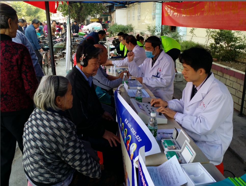 當(dāng)日參加義診活動(dòng)的以老人家為主,年紀(jì)大了或多或少都有聽力上的障礙,一位85歲的老阿公身體硬朗、精神矍鑠,就是耳背的問題困擾著他的日常生活,得知市三院有助聽器驗(yàn)配中心,他歡喜得像解除了一塊心病,終于可以像年輕時(shí)那樣收聽廣播了。另一位阿婆的聽力因長(zhǎng)年累月已經(jīng)下降到了很差的程度,王豪主任細(xì)心的為她檢查后建議她找個(gè)時(shí)間由孩子帶著去醫(yī)院進(jìn)一步檢查,選擇適合自己的助聽器來改善聽力,她有些落寞的說“我兒子工作很忙的”,淺淺的一句話揪住了醫(yī)者的心,作為醫(yī)生可以言傳身教增強(qiáng)大家愛耳護(hù)耳的意識(shí),引導(dǎo)大家正確認(rèn)識(shí)耳科疾病、預(yù)防先行,可以通過醫(yī)學(xué)手段改善聽力,但卻無法醫(yī)治空巢老人心靈上的孤寂。