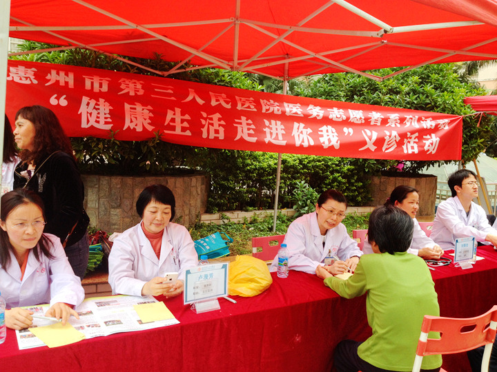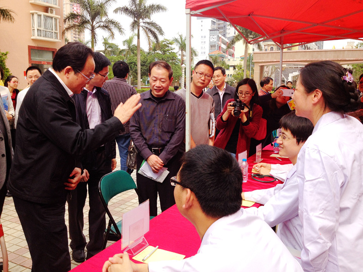 我院志愿者服務(wù)隊(duì)到場開展了“健康生活走近你我”義診活動(dòng),組織各臨床醫(yī)師6名、藥劑師2名、護(hù)理師4名,志愿者工作人員5名,為居民提供免費(fèi)義診等相關(guān)服務(wù)。市委陳訓(xùn)廷副書記攜同相關(guān)部門領(lǐng)導(dǎo)到每一個(gè)服務(wù)區(qū)域進(jìn)行巡查指導(dǎo),并對(duì)我院組織的義診活動(dòng)表示贊揚(yáng),希望我院發(fā)揚(yáng)優(yōu)質(zhì)服務(wù),繼續(xù)為群眾健康努力貢獻(xiàn)力量。