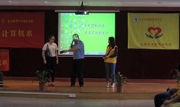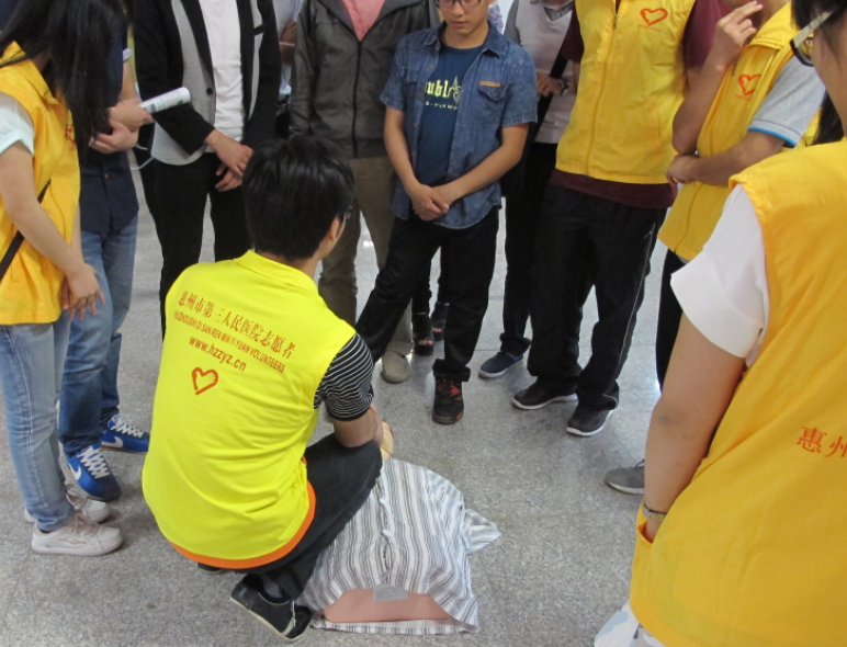 校園安全重于泰山,校園安全問題與每個師生、家長和社會有著切身的關(guān)系。為加強大學(xué)生個人安全意識、安全防范意識,減少意外事件的發(fā)生率,3月23日下午,東江義工隊、東江時報幫辦義工聯(lián)盟隊、惠州市第三人民醫(yī)院攜手走進了位于馬安鎮(zhèn)的惠州市經(jīng)濟職業(yè)技術(shù)學(xué)院,為在校150名計算機系的師生普及防盜、防搶、防詐騙知識,傳授防溺水及自救他救方法以及心肺復(fù)蘇操作技能,從多個角度為在場師生講解傳播安全知識。此次講座,為了讓學(xué)生們能親身體驗下心肺復(fù)蘇操作,我院派出三名志愿者、帶去了三個心肺復(fù)蘇模型。