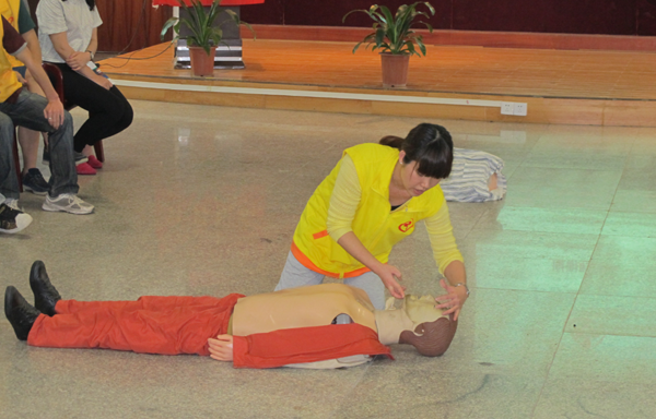 授課結(jié)束后,同學(xué)們分隊輪流在模型上進行操作。在操作過程中,我院志愿者們詳細(xì)地為學(xué)生講解操作的細(xì)節(jié)問題,糾正他們在操作過程中不正確的姿勢,同學(xué)們都特別認(rèn)真地學(xué)習(xí),掌握了心肺復(fù)蘇這項重要急救技能。(社醫(yī)部 吳娜)
