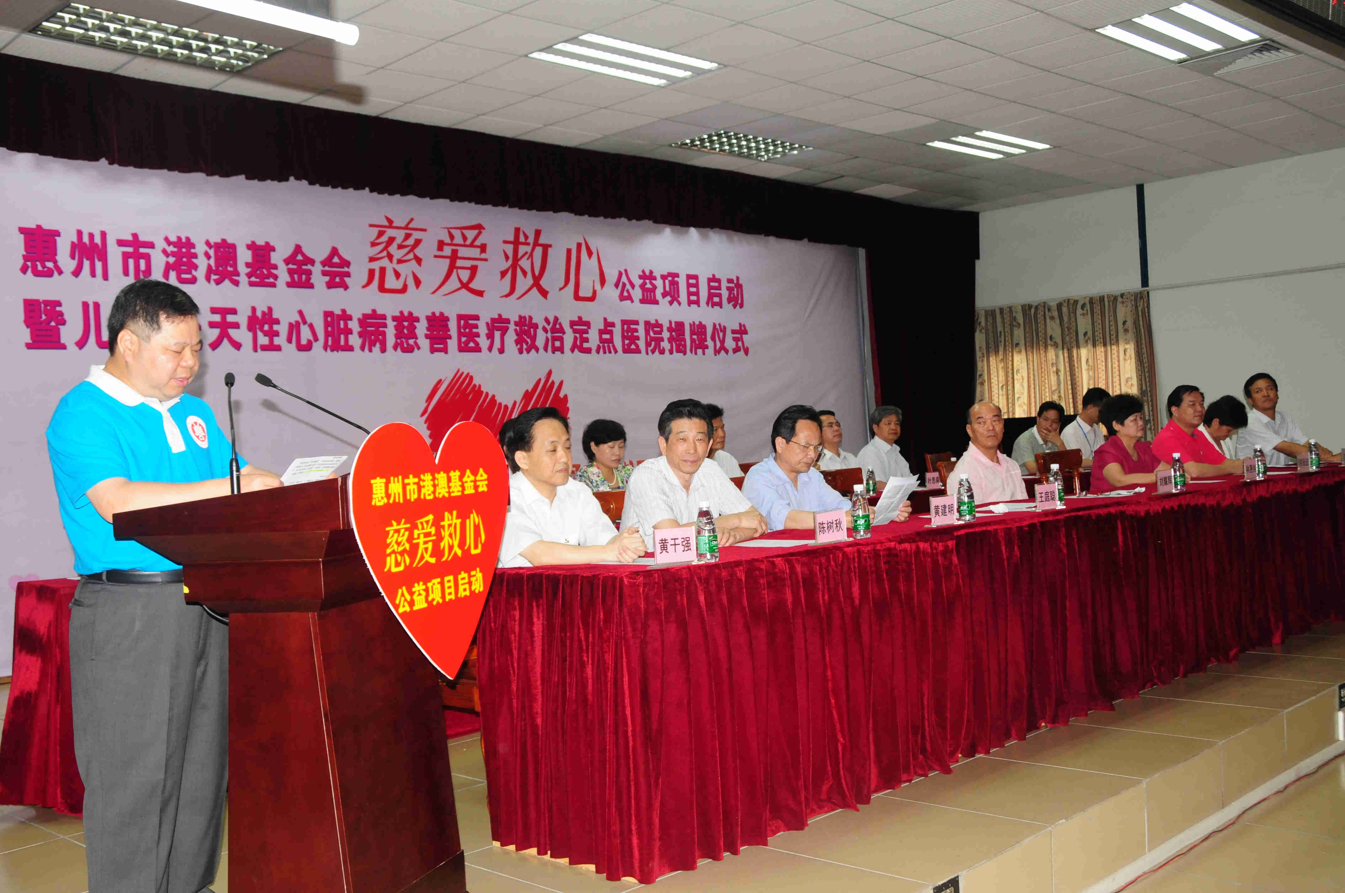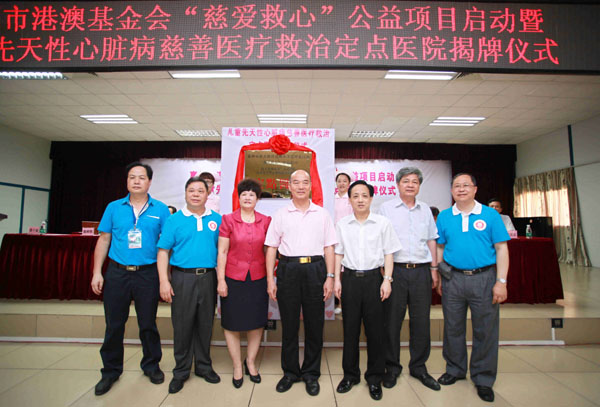 2014年5月28日上午,惠州市港澳慈善基金會“慈愛救心”公益項(xiàng)目啟動(dòng)暨兒童先天性心臟病慈善醫(yī)療救治定點(diǎn)醫(yī)院揭牌儀式在惠州市第三人民醫(yī)院多功能會議廳隆重舉行,市政協(xié)劉耀輝主席率市政協(xié)、市民政局、市慈善總會、市港澳慈善基金會、市衛(wèi)計(jì)局等市直單位近80人參加了儀式,區(qū)委書記黃干強(qiáng)及區(qū)政協(xié)、民政等相關(guān)區(qū)屬單位領(lǐng)導(dǎo)以及惠州各大媒體記者、市三院職工等現(xiàn)場200多人共同見證了這一善舉,向全社會傳播了公益慈善正能量。