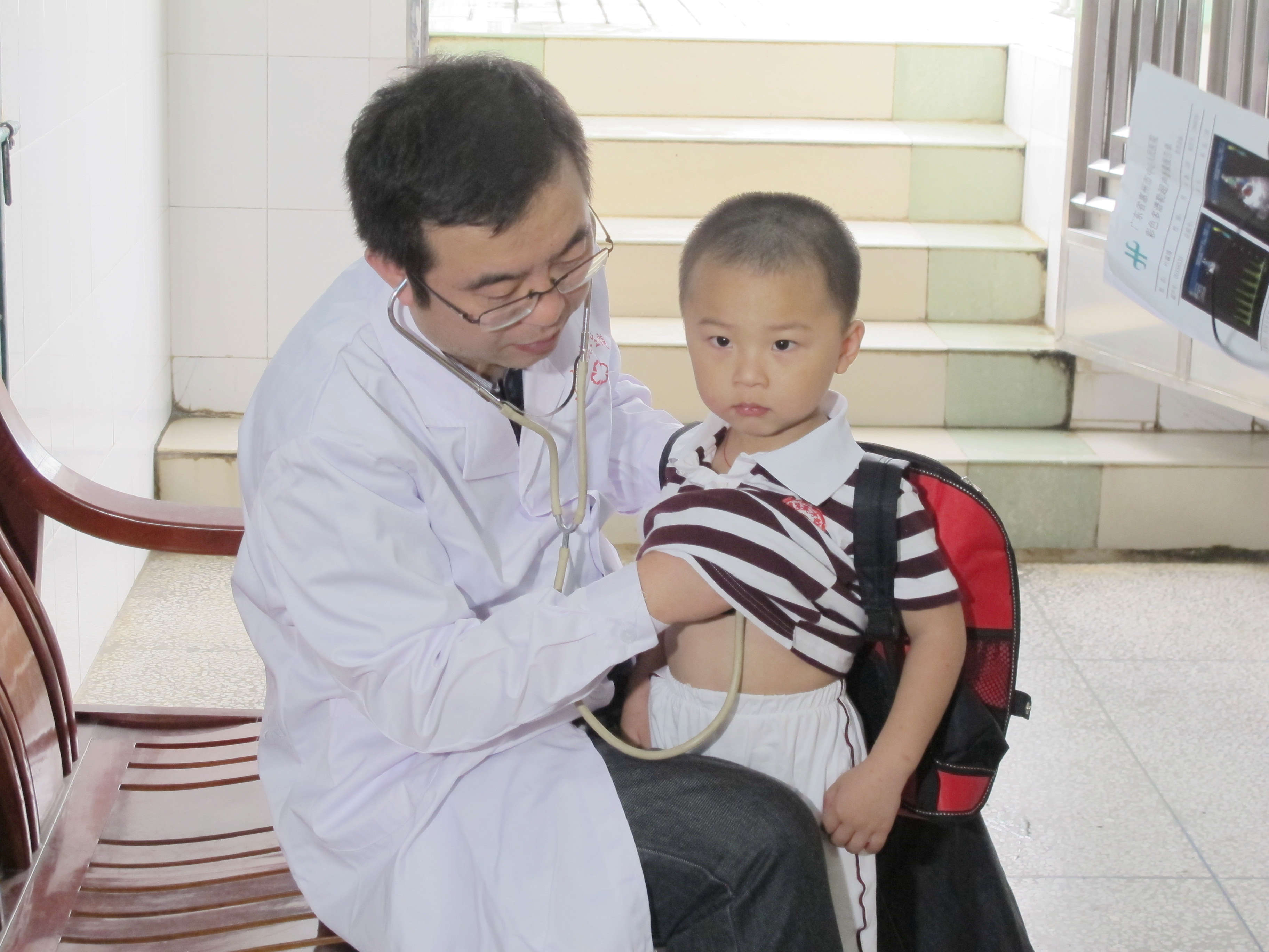 2014年5月21日下午,我院心血管醫(yī)學(xué)中心心胸外科鐘衛(wèi)權(quán)主任和劉凌博士帶隊,攜帶心臟彩超專業(yè)設(shè)備來到博羅縣公莊鎮(zhèn)衛(wèi)生院,為轄區(qū)內(nèi)5名先心病患兒進(jìn)一步細(xì)致心臟彩超檢查(年齡最小不到一歲,最大有六歲多)。
