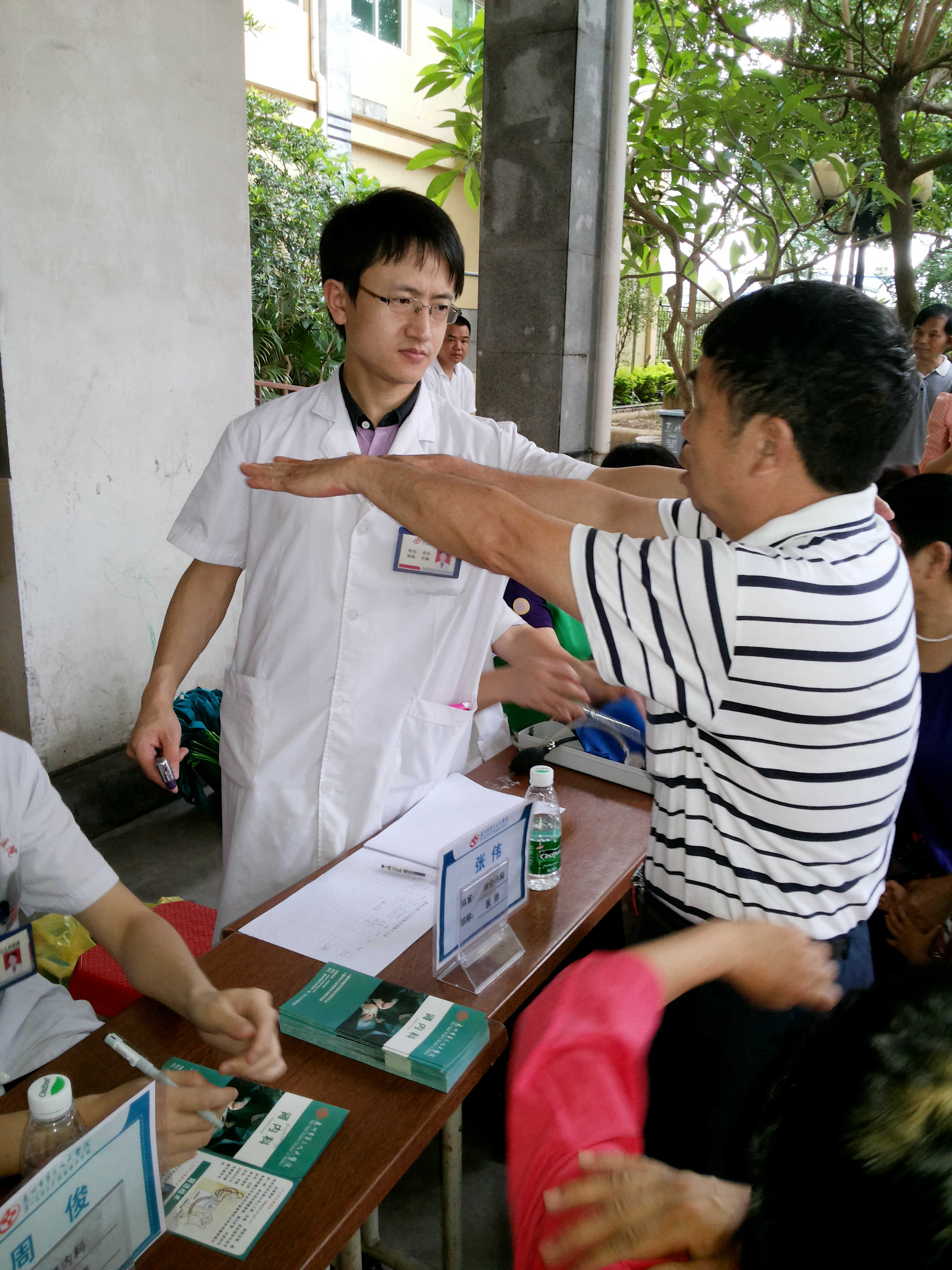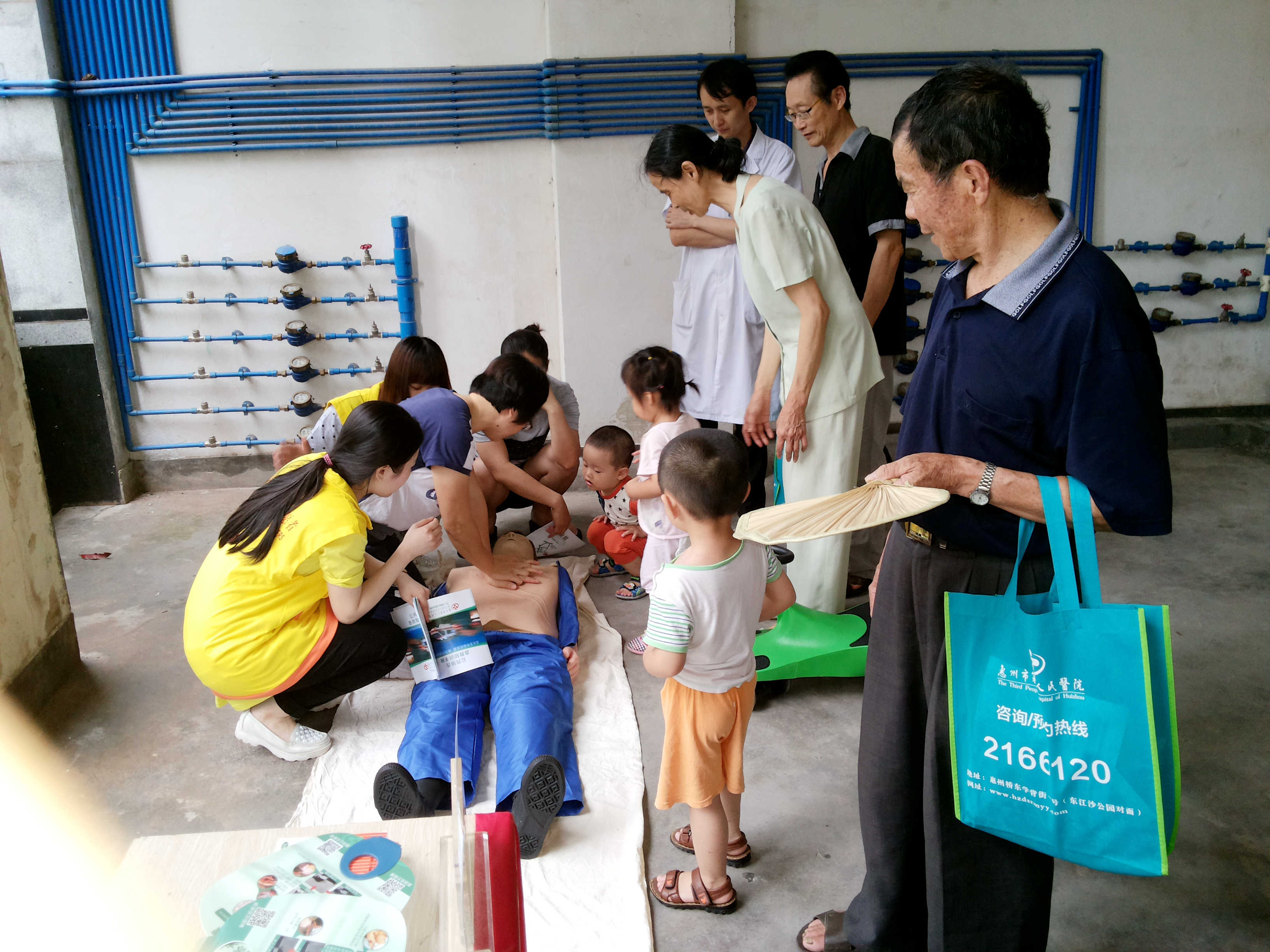 2014年5月22日上午,我院聯(lián)合金湖社區(qū)綜合服務(wù)中心、河南岸社區(qū)衛(wèi)生服務(wù)中心,在金湖社區(qū)南山花園(河南岸三環(huán)立交橋旁)舉辦了以健康齊關(guān)注,社工伴你行為主題的社區(qū)義診活動(dòng)。本次義診活動(dòng)設(shè)置了三個(gè)攤位,分別是社區(qū)社工宣傳區(qū)、義診區(qū)和心肺復(fù)蘇急救體驗(yàn)區(qū),活動(dòng)吸引了許多老年人前來(lái)健康咨詢。同時(shí)本次活動(dòng)也讓居民親身體驗(yàn)心肺復(fù)蘇的操作過(guò)程,讓大家學(xué)會(huì)了急救技能,增強(qiáng)了居民“人人會(huì)急救,急救為人人”的意識(shí)。(社會(huì)醫(yī)療服務(wù)部 葉建良)