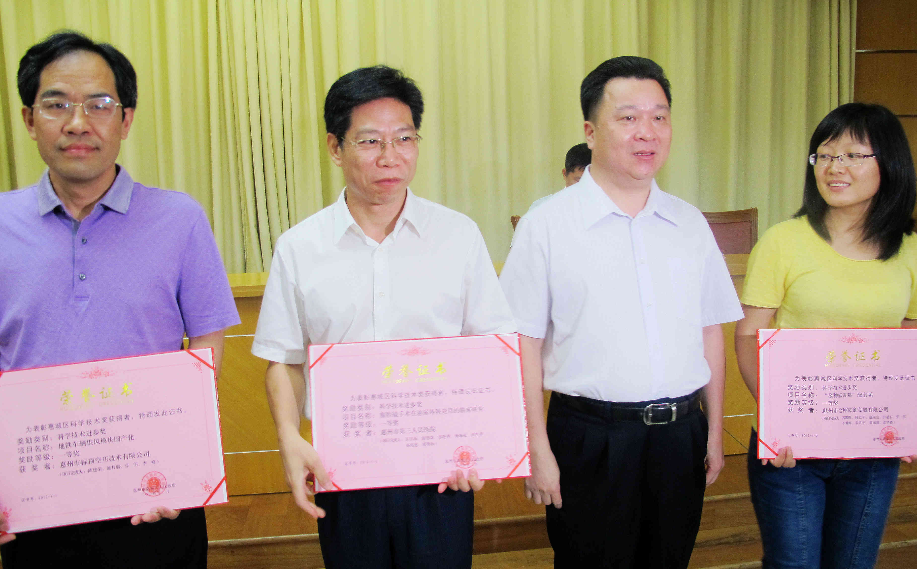 7月24日,2014年惠城區(qū)科技創(chuàng)新大會(huì)在區(qū)行政中心會(huì)議室隆重召開?;莩菂^(qū)區(qū)委書記、區(qū)人大常委會(huì)主任黃干強(qiáng),區(qū)委副書記、區(qū)長(zhǎng)周文高,副區(qū)長(zhǎng)劉恒蓉等領(lǐng)導(dǎo)出席會(huì)議。我院鄧漢東書記、許漢標(biāo)副院長(zhǎng)及獲獎(jiǎng)人員參加了會(huì)議。