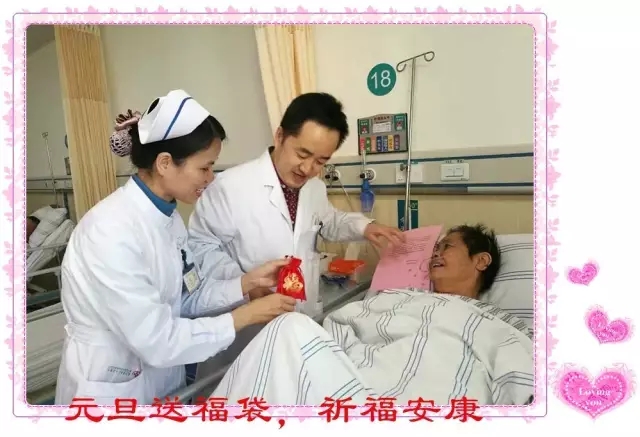 為了慰藉病友們苦楚的心靈,醫(yī)護人員在做好本職工作,優(yōu)化服務外,更是巧思妙想,在人文關(guān)懷方面做了諸多嘗試。如購置助行器、坐便器;發(fā)放問候卡、宣教單;開展“溫馨小家”、工休座談會;開設醫(yī)患溝通欄,每月更新內(nèi)容,宣傳科室先進技術(shù)、健康教育、家屬感謝、節(jié)日慰問等,給人以信心、愛心;在平安夜到來之際,護士們集思廣益,開展“寫祝福,求平安”和送“平安果”的活動。春節(jié)時期,科室特意掛上小燈籠,貼上祝??祻偷臉苏Z。在護士長的帶領(lǐng)下,集體向病友們拜年,送上寓意吉祥的桔子。2017年元旦,在李雪松主任的帶領(lǐng)下,醫(yī)護人員集體到病房問候患者,送上了寓意吉祥如意的定制福袋。福袋雖小,樸實無華,卻凝聚了神經(jīng)外科全體醫(yī)護人員的美好祝愿,也表達了一份仁心仁愛、尊重生命的人文關(guān)懷,獲得了病友們的贊譽。