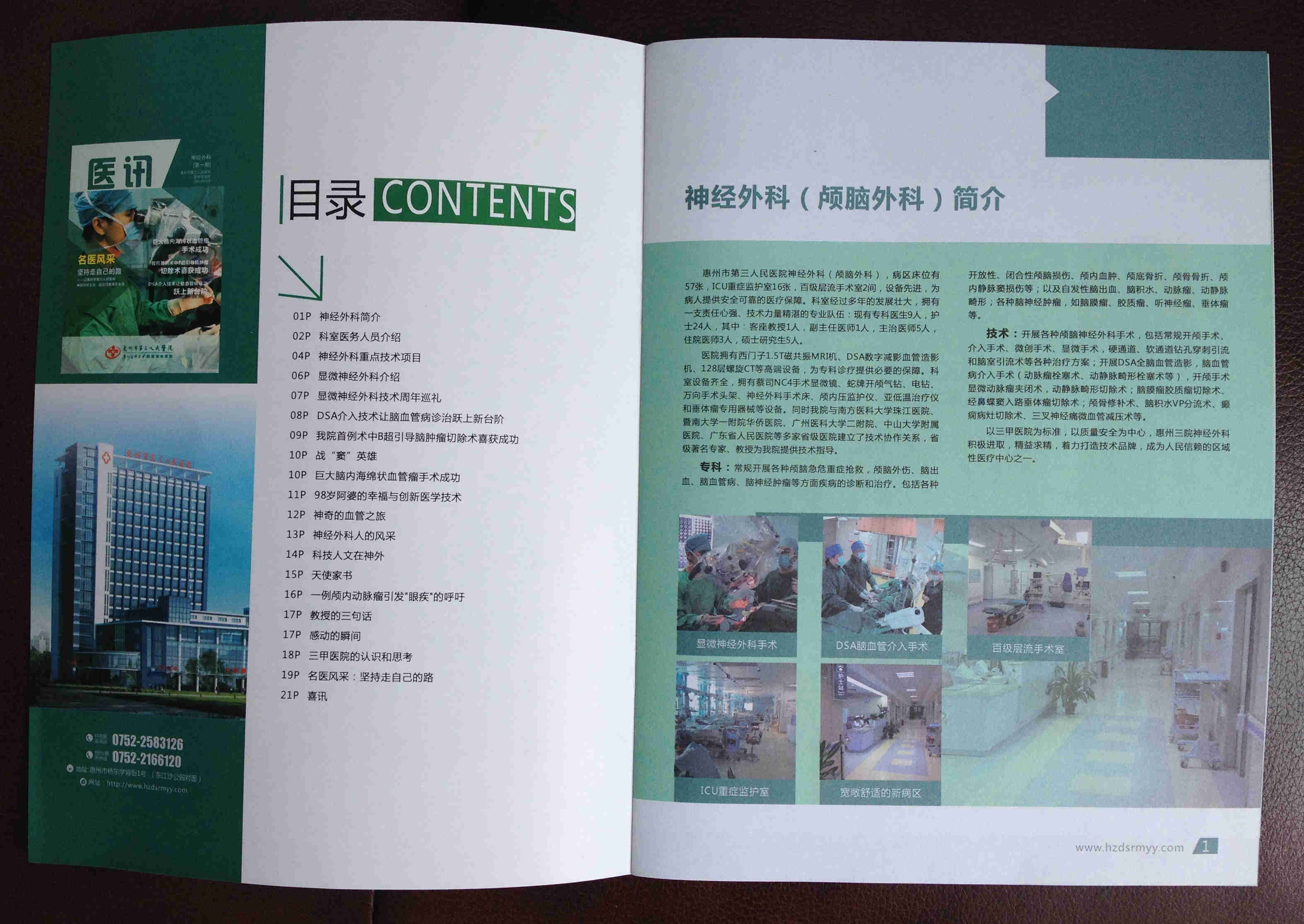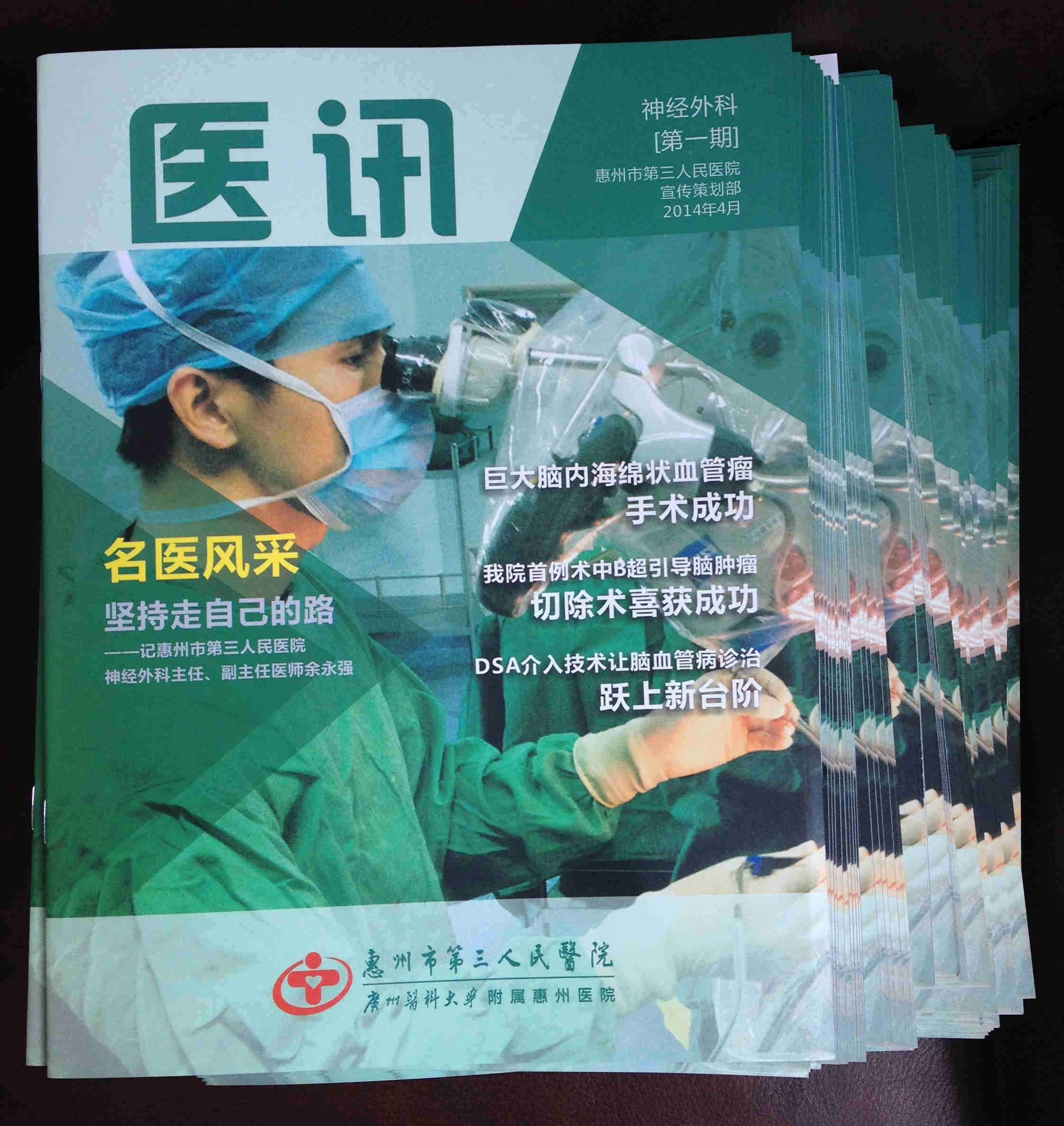 借鑒國內(nèi)名醫(yī)院名專科的成功宣傳方法,我院神經(jīng)外科提出創(chuàng)辦一本科級雜志的想法,立即得到了宣傳策劃部的積極響應和大力支持。該雜志完全由我院神經(jīng)外科供稿,主要精選神經(jīng)外科近期的優(yōu)秀宣傳稿件,在宣傳策劃部的精心編輯策劃下,制作成一本圖文并茂的??菩麄麟s志。通過這本雜志,讓更多的病友和同道了解我院神經(jīng)外科,提高科室技術(shù)品牌的知名度。