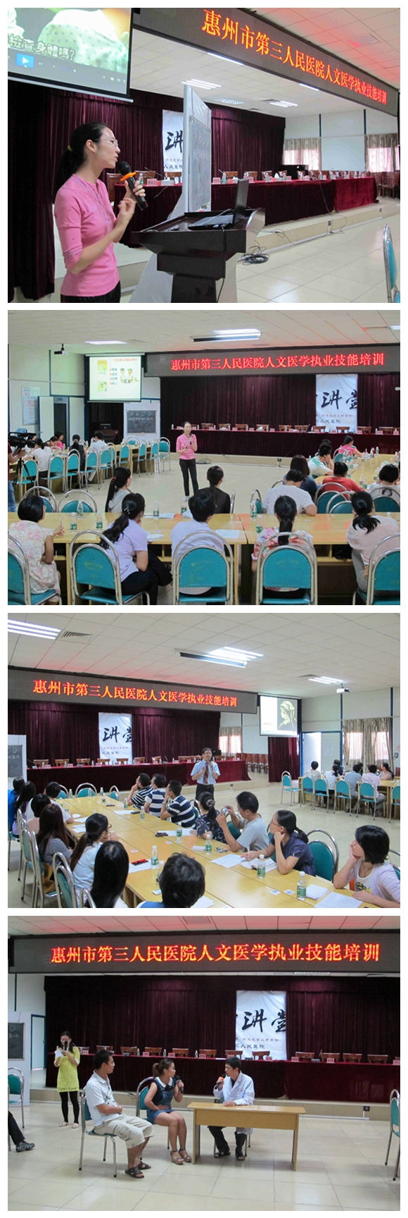 人文醫(yī)學(xué)執(zhí)業(yè)技能培訓(xùn)班包括《人文醫(yī)學(xué)緒論》、《醫(yī)患溝通概要》、《溝通的基礎(chǔ)理論及評價技術(shù)》、《非語言交流的技能》、《與患方建立和諧關(guān)系的技能》、《人文性采集病史的技能》等14節(jié)課。14位講師要在兩天內(nèi)講完所有內(nèi)容,而且要各學(xué)員都能掌握應(yīng)用,他們無一不是使出渾身解數(shù)。通過幽默生動的演講,各種題材的多媒體錄像,不同的案例分析,每一位培訓(xùn)班的成員都能輕松的理解培訓(xùn)內(nèi)容,培訓(xùn)尾聲舉行的角色扮演更是讓學(xué)員們現(xiàn)場實習(xí),進而熟練掌握所學(xué)。