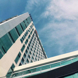 【一張拍攝于大清早的有著特殊視角的三院新樓,想說新樓的顏色真心太好看了。】