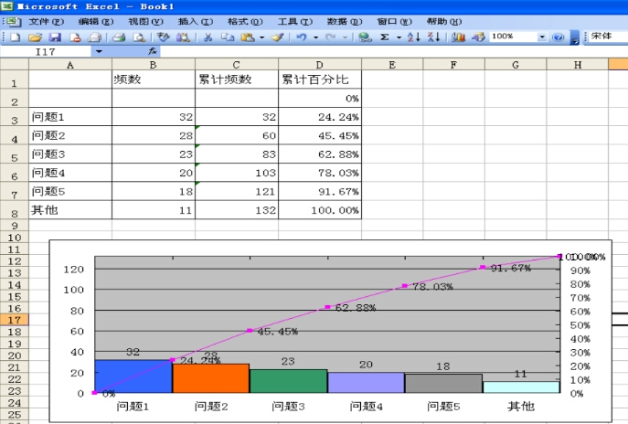 需要注意的是,柏拉圖條柱間沒(méi)有間隔,條柱與縱軸間也沒(méi)有間隔;條柱寬度要相同,橫軸按項(xiàng)目排列;柏拉圖應(yīng)按大小順序由高至低排列;以二八法則所決定的改善重點(diǎn)項(xiàng)目(累計(jì)百分比在70%~80%)要以虛線示出。