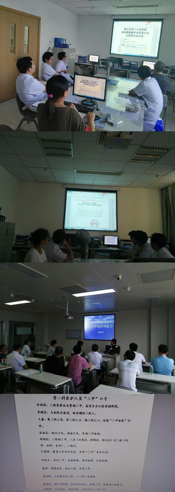 服務(wù)病人重在參與,爭創(chuàng)“三甲”重在行動(dòng),愿我院“三甲”評(píng)審能順利通過,也祝三院迎來更加輝煌的明天?。i肩腰腿痛科