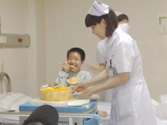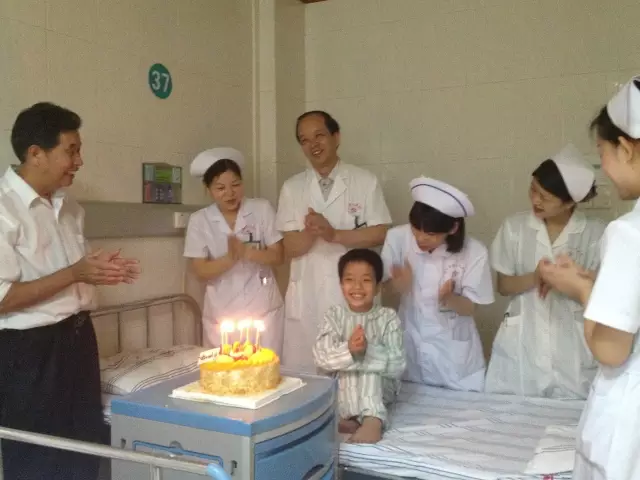 葉小燕護(hù)長(zhǎng)帶領(lǐng)護(hù)士們?yōu)榛颊咝∨笥堰^(guò)生日