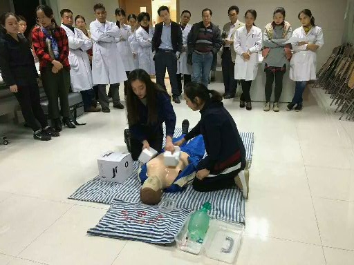 (健康管理中心雙人CPR考試中)