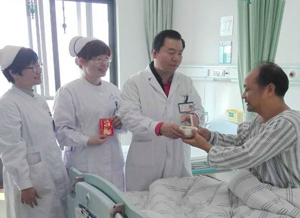 醫(yī)務(wù)人員過年為住院患者送上年夜餃子和利是