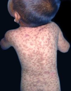 麻疹疫苗使用后全國發(fā)病率已下降。目前發(fā)現(xiàn)的發(fā)病者多在未接受疫苗的嬰幼兒!