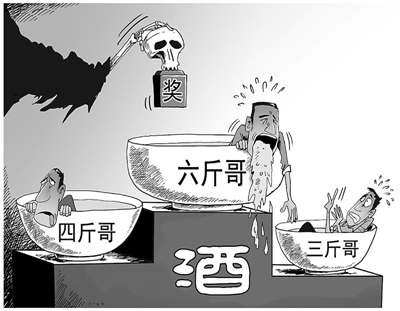 近日網(wǎng)絡(luò)頻現(xiàn)“拼酒哥”,從“四斤哥”、“五斤哥”“十斤哥”甚至出現(xiàn)了十二斤“拼酒哥”。不管這背后隱藏著多大的經(jīng)濟(jì)利益,但是拼酒實(shí)在是有害身體健康。