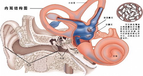 人的內(nèi)耳有負(fù)責(zé)聽(tīng)力和維持平衡兩個(gè)功能。內(nèi)耳中的橢圓囊和球囊上有囊斑,其表面鑲綴著許多像鉆石一樣的碳酸鈣結(jié)晶,俗稱(chēng)為耳石。當(dāng)某些因素導(dǎo)致耳石脫落,它就會(huì)在內(nèi)耳中漂浮。如漂移到半規(guī)管內(nèi),就會(huì)影響人體平衡的功能,引起眩暈。