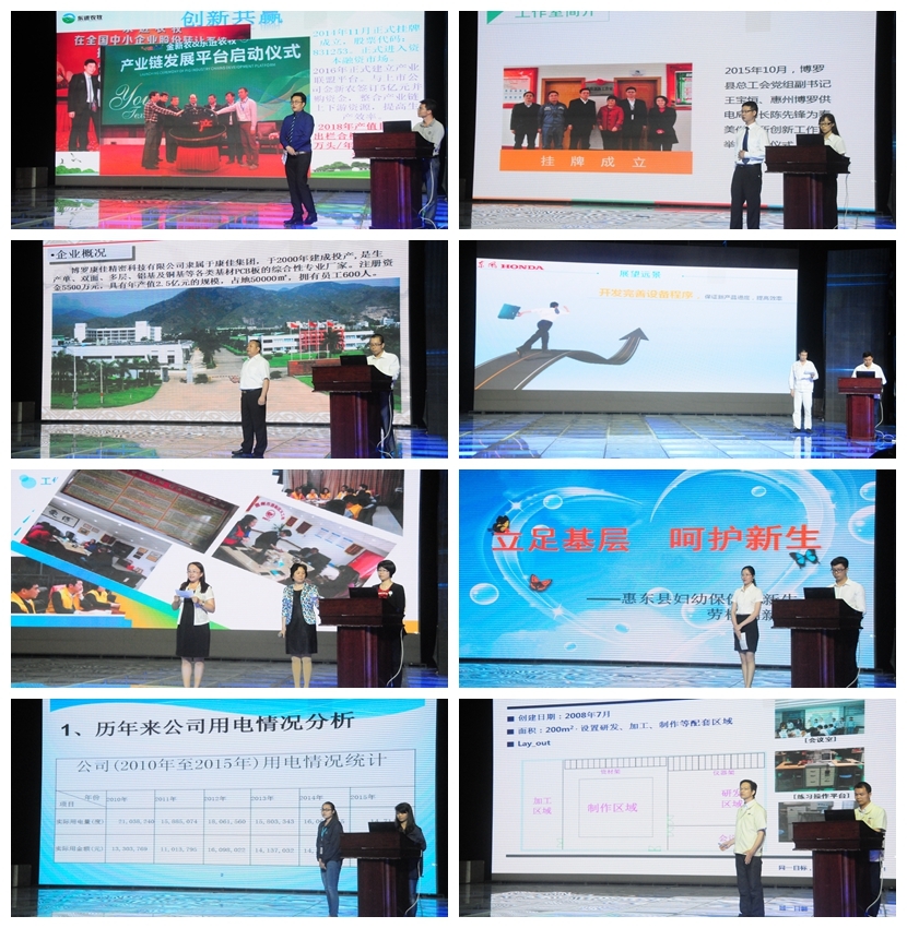 本次惠州市“勞模創(chuàng)新工作室” 評(píng)選活動(dòng)經(jīng)過初審后,有20家“勞模創(chuàng)新工作室”進(jìn)入終審評(píng)比,最終評(píng)出前10名?;葜菔腥舜蟪N瘯?huì)副主任、市總工會(huì)主席鐘一爾,市總工會(huì)常務(wù)副主席楊慧紅,市總工會(huì)副主席曾紅艷及職工代表300人出席參加了本次評(píng)選活動(dòng)。