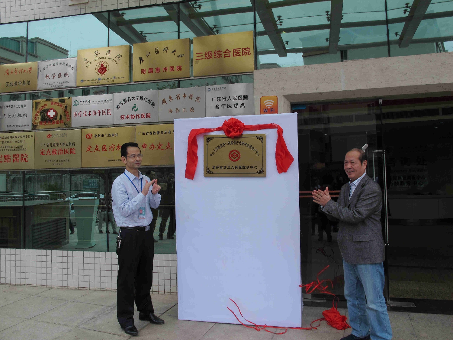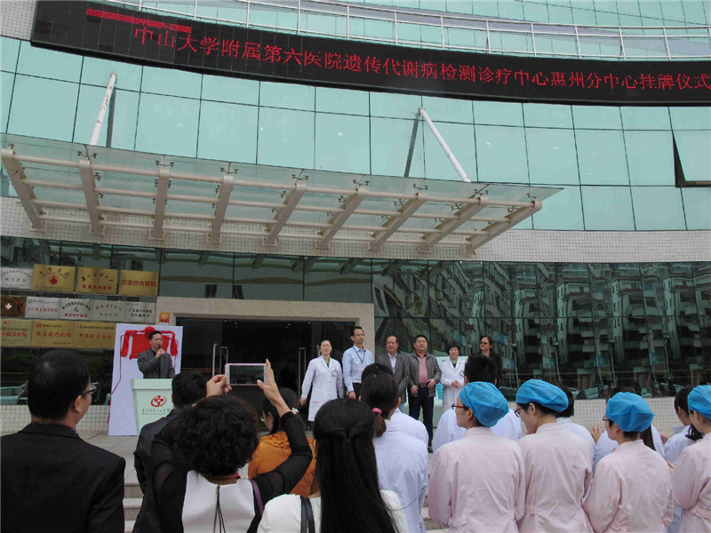 3月26日上午,中山大學(xué)附屬第六醫(yī)院“遺傳代謝病檢測中心惠州分中心”揭牌儀式在我院綜合大樓門口如期舉行。中山大學(xué)附屬第六醫(yī)院兒科肖昕主任、我院鄧漢東書記、相關(guān)職能科室及兒科、婦產(chǎn)科醫(yī)務(wù)人員等共同參與了揭牌儀式。