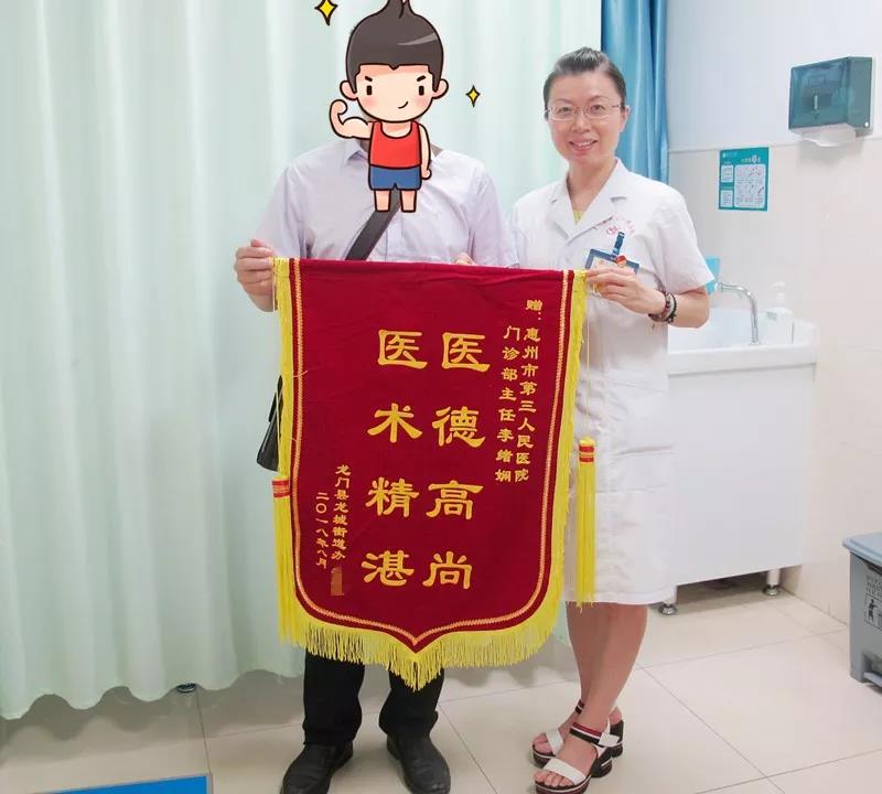 一位專程從龍門趕來的李先生走進門診部李緒嫻主任的診室,為她獻上了一面感謝的錦旗。據(jù)李先生敘述,他早上6點多就從家里出發(fā)了,從龍門直奔惠州,早餐都顧不上吃,想到要跟李主任見面,內(nèi)心還有些小激動。對他來說,李主任既是為他解除病痛的恩人,也是真誠相待的朋友。這事還得從一年前說起。