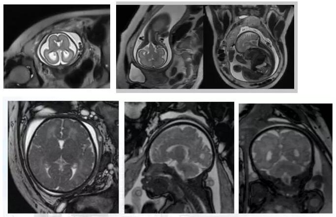 磁共振檢查不受胎兒骨骼及羊水量的影響,對(duì)胎兒中樞神經(jīng)系統(tǒng)、羊水過(guò)少、雙胎、孕周較大時(shí)顯示很好,特別是孕晚期胎頭入盆或胎兒顱骨骨化時(shí)。