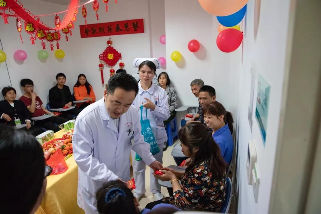 一大早,神經(jīng)醫(yī)學中心主任李雪松博士,神經(jīng)外科溫建萍、羅宇華護士長就帶領(lǐng)醫(yī)護人員到病房查房了。大家一起給患者及家屬送上節(jié)日的祝福和寓意美好的福袋,并邀請他們參加春節(jié)聯(lián)歡會。