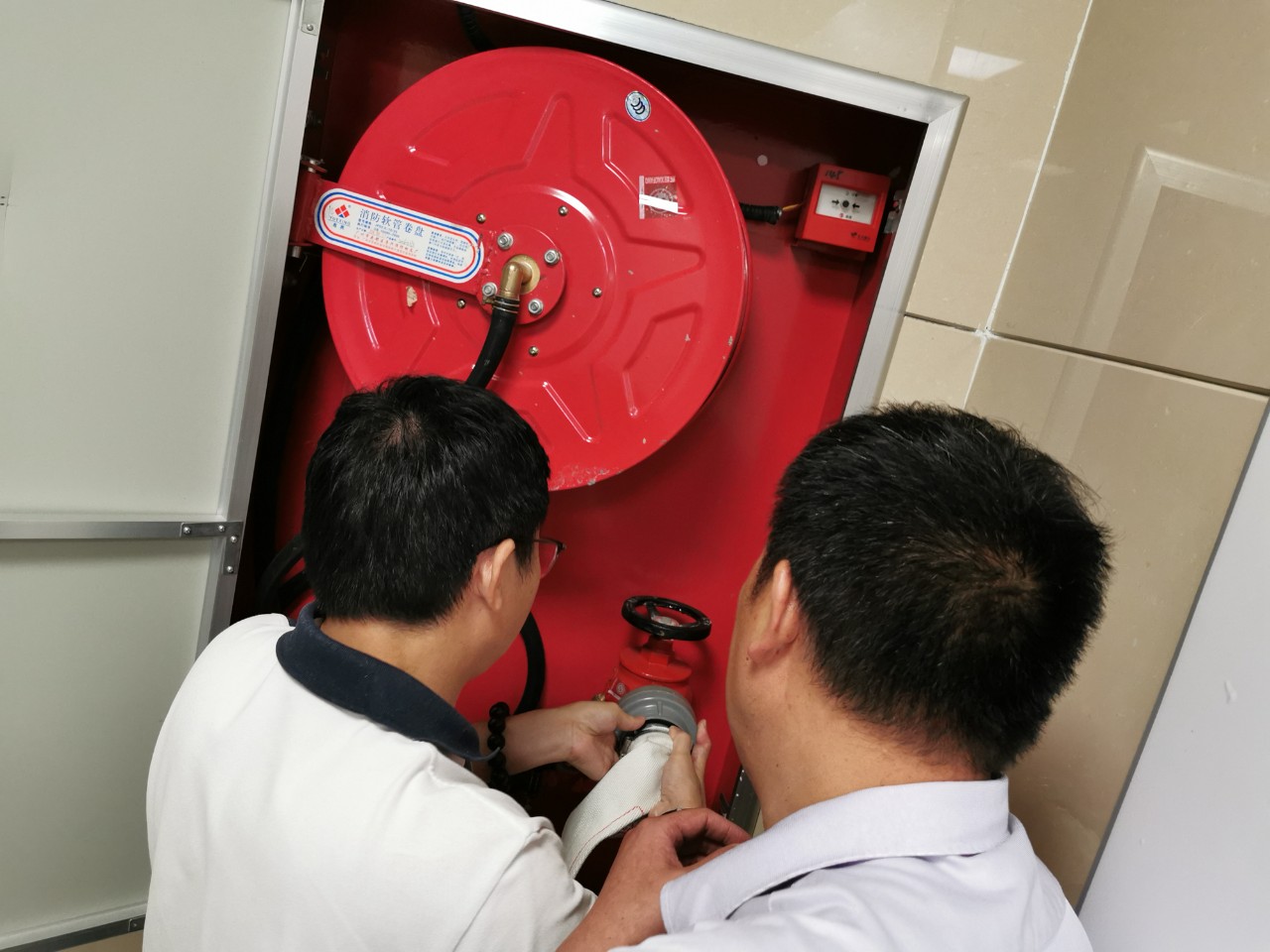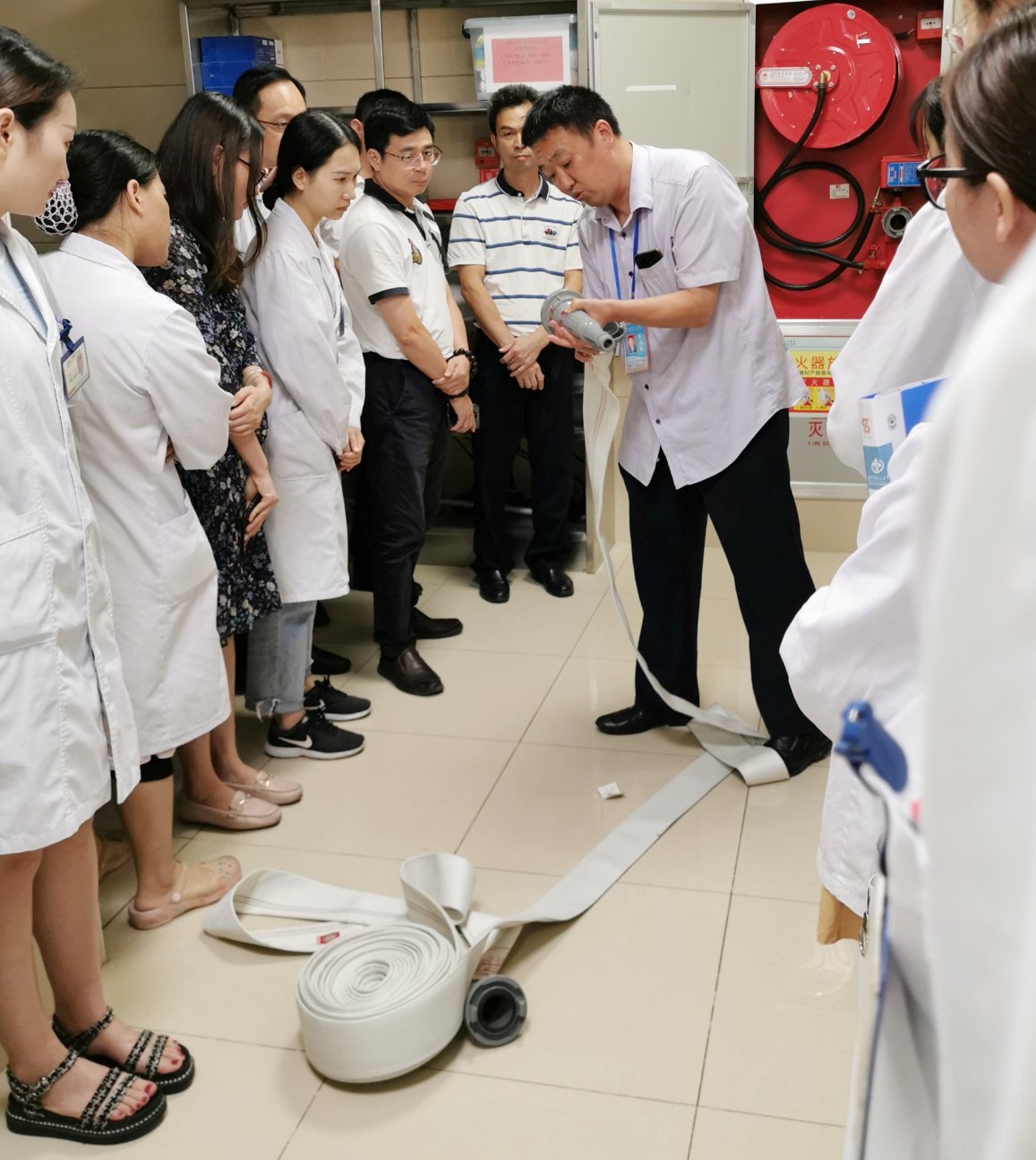 此次演練邀請了后勤保障部余雙喜主管監(jiān)督指導(dǎo)。演練前,余主管考核了水槍、水帶等滅火器材的使用方法,確保藥學(xué)小組人人過關(guān)。