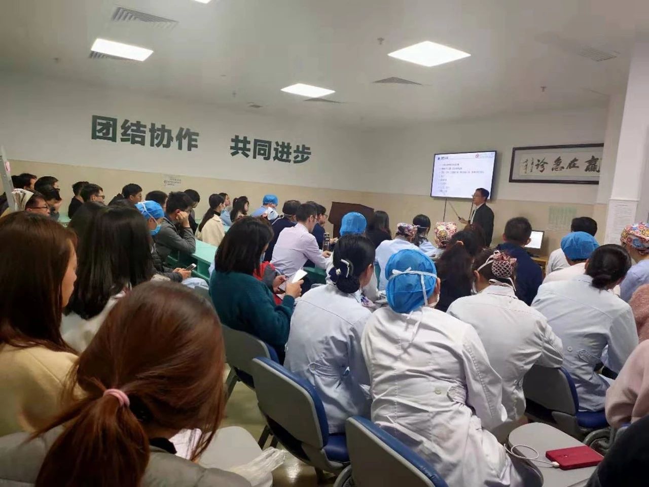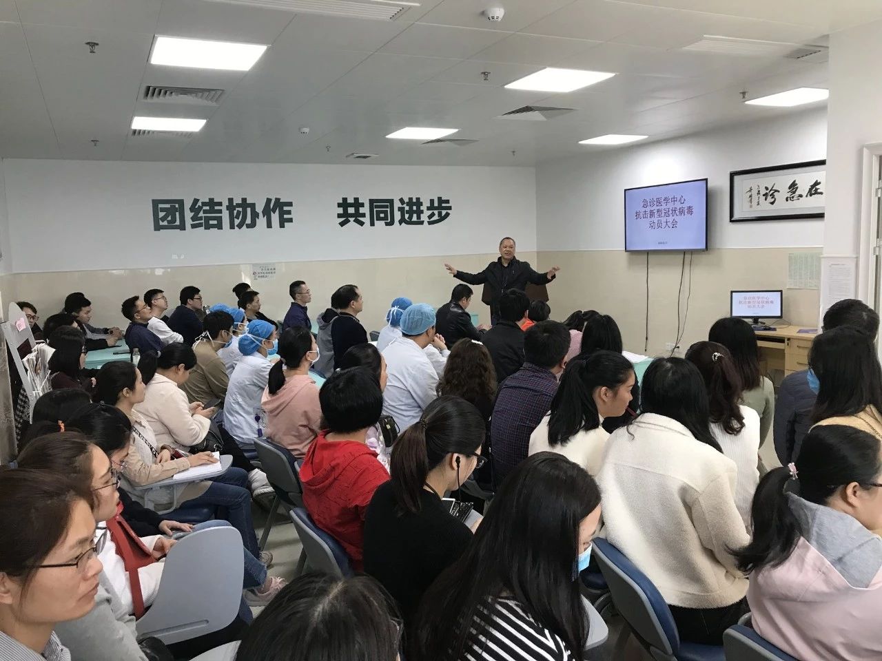 1月23日上午9點(diǎn),急診醫(yī)學(xué)中心召開全員動(dòng)員大會(huì),恰逢醫(yī)院黨委書記鄧漢東等領(lǐng)導(dǎo)一行前來慰問。鄧漢東書記強(qiáng)調(diào),要嚴(yán)格防護(hù),發(fā)揚(yáng)急診急救精神,無畏艱險(xiǎn),充當(dāng)醫(yī)院的堅(jiān)強(qiáng)后盾,這讓在場(chǎng)的每一位急診人斗志昂揚(yáng)。