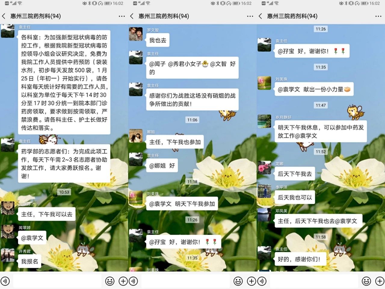 而為了讓這項(xiàng)工作迅速落地,讓臨床一線人員及早喝到這包中藥,藥學(xué)部全體人員積極響應(yīng)號召,踴躍報(bào)名加入到發(fā)放中藥的志愿者隊(duì)伍中。