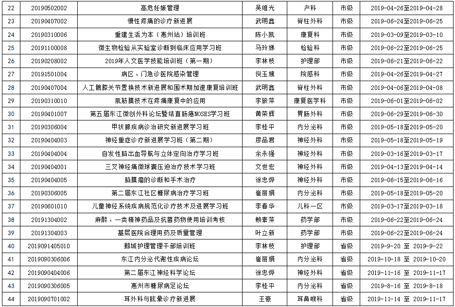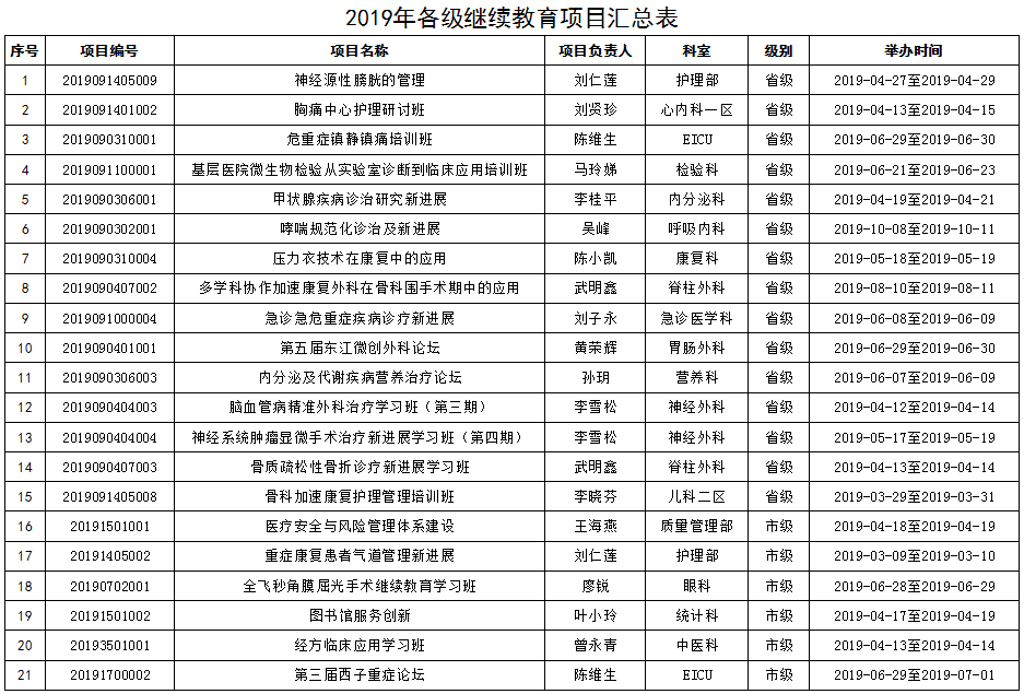 2019年各級(jí)繼續(xù)教育項(xiàng)目匯總表
