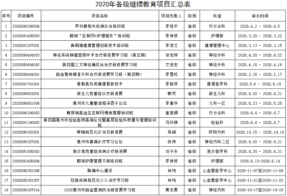 2020年各級繼續(xù)教育項(xiàng)目匯總表
