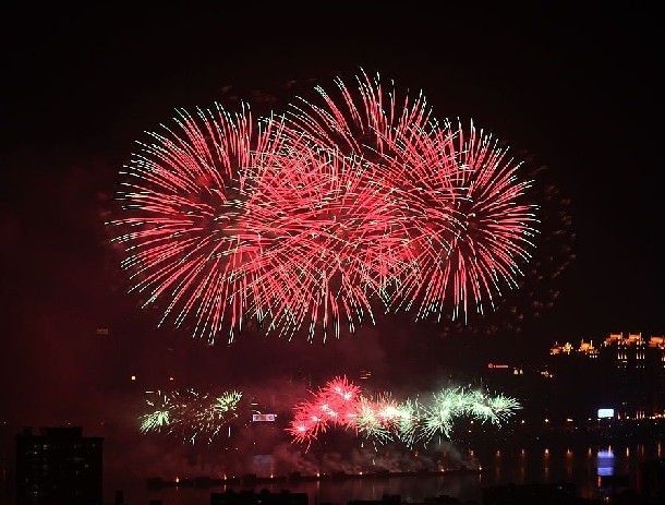 農(nóng)歷正月十五,晚上八點半,惠州市區(qū)東江沙公園的東江邊舉辦了2013年惠州市元宵音樂焰火晚會,我們醫(yī)院行政樓頂樓露臺是在佳觀賞煙花位置,當(dāng)我們8點鐘到達(dá)樓頂?shù)臅r候,已經(jīng)有很多同事在樓頂靜候了,一長排的單反架在絕佳位置準(zhǔn)備記錄煙花綻放的美麗瞬間,當(dāng)一排金色的煙花“嘩啦嘩啦”的噴射出美麗花朵后,煙花晚會正式開始,現(xiàn)場一片歡騰,此次除了有常見的百龍吐金、紅燈高掛、瀑布飛流、葡萄串串、牡丹盛開等精彩煙火外,還有金色狂舞一些列特色的生肖煙花,當(dāng)五彩斑斕、姹紫嫣紅的煙花從水面升起,在空中綻放時東江上空隨即成為了流光溢彩、激情四射的華麗長卷。(醫(yī)保部 曹麗珍)