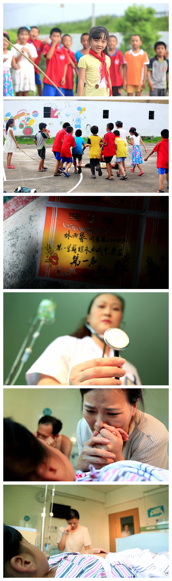 鏡頭首先聚焦在一個天真爛漫的小女孩身上,隨著她毫無預(yù)兆地倒下,一個原本并不富裕的家庭陷入了困境。女孩名叫林雨馨,患有先天性心臟病,急需手術(shù)治療,可家里無論如何也湊不出昂貴的手術(shù)費。父親焦灼的眼神,母親痛苦的眼淚,還有雨馨蒼白的面容,讓影片蒙上了悲戚的色彩。然而這時,醫(yī)院的“慈善救心”行動給這個貧困家庭帶來了曙光,手術(shù)的成功也給小雨馨點燃了第二次生命的火焰。小雨馨一直心存感恩,夢想成為一名醫(yī)者。