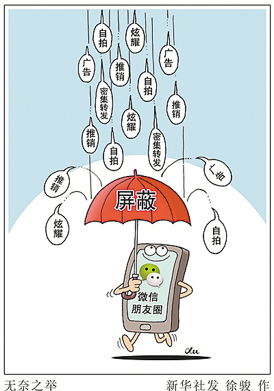 還有一些人會不定期的清理朋友圈的好友,屏蔽一些人,理由是怕朋友圈里那些莫名其妙的人,其次是怕親朋好友知道太多的事,沒有隱私可言。我有一個朋友拒絕加別人為好友的理由就是:“我不是你們的朋友,請原諒?!焙唵蚊髁说囊痪湓挘桶涯吧司苤谇Ю镏狻T诓粩啾磺謇淼呐笥讶χ?,有時候,拒絕是一種美好,無視是最深刻的遺忘。我們往往屏蔽最多的是父母和長輩,實際上這兩類人在人際交往中必不可少。(創(chuàng)傷及骨關(guān)節(jié)外科 黃敏)