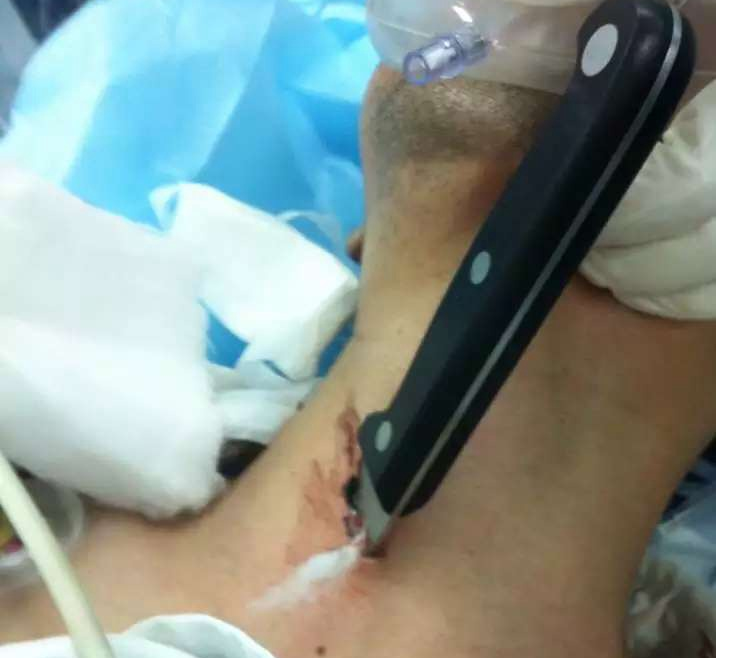 據(jù)了解,這個(gè)患者有小兒麻痹癥。家人晚上下班回家發(fā)現(xiàn)立即送到醫(yī)院。經(jīng)診斷患者情況十分危急,時(shí)間就是生命,立即“綠色通道”緊急送手術(shù)室。醫(yī)生們馬上對(duì)患者進(jìn)行搶救處理,而手術(shù)在緊張有序地進(jìn)行。術(shù)中,醫(yī)生發(fā)現(xiàn),病人頸部創(chuàng)口水果刀離大部分的“危險(xiǎn)區(qū)域”僅幾毫米之隔,真是險(xiǎn)之又險(xiǎn),如果傷及,患者會(huì)來不及救治而立即死亡。經(jīng)過醫(yī)護(hù)人員四個(gè)多小時(shí)的協(xié)作努力,病人終于脫離了危險(xiǎn)送回病房觀察。