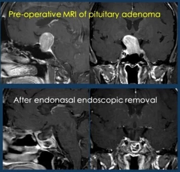 早期發(fā)現(xiàn)、早期診斷、早期治療,腦垂體腫瘤的才能更加愈合良好。其治療方法有藥物治療和手術(shù)治療。目前手術(shù)治療方式絕大多數(shù)選擇經(jīng)單鼻蝶入路垂體腫瘤切除術(shù),即經(jīng)一側(cè)鼻孔,切開部分鼻粘膜,咬除部分蝶竇前壁和鞍底后即可切除腫瘤。