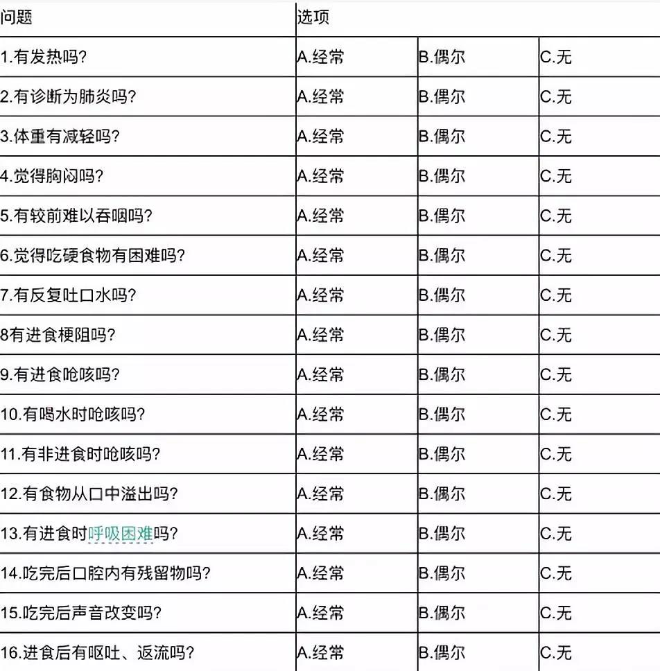 如果您有以下任何一項為A及多個B即為高風(fēng)險攝食,應(yīng)盡快到醫(yī)院做進(jìn)一步診斷和檢查。