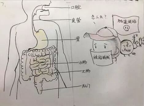 巴克球的旅游路線圖很明顯:口腔(起點站)-食管-胃-小腸-大腸(升結腸-橫結腸-降結腸-乙狀結腸)-直腸-肛門(終點站)。