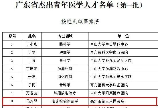 近日,廣東省衛(wèi)生計生委印發(fā)《廣東省衛(wèi)生計生委關(guān)于廣東省醫(yī)學(xué)領(lǐng)軍人才和杰出青年醫(yī)學(xué)人才(第一批)遴選結(jié)果的通知》,公布了第一批廣東省醫(yī)學(xué)領(lǐng)軍人才和杰出青年醫(yī)學(xué)人才入選名單,惠州共10人入選廣東省杰出青年醫(yī)學(xué)人才。