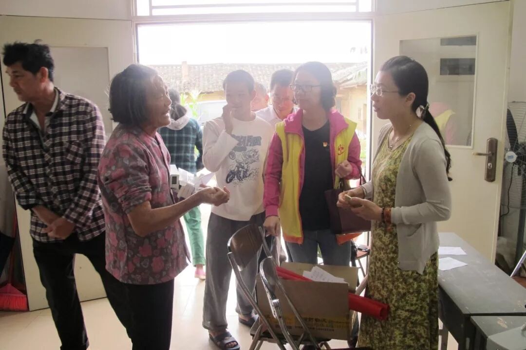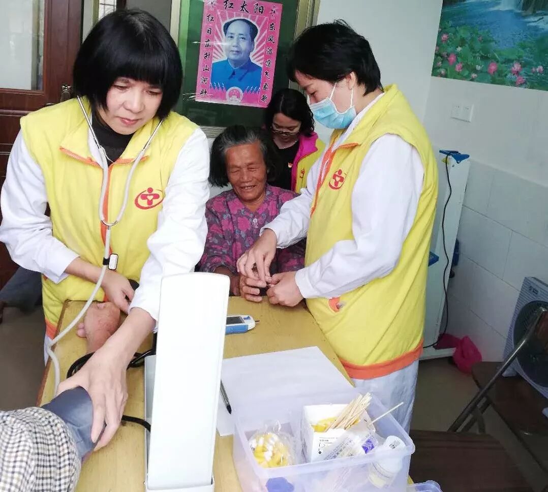 見義診隊(duì)伍到達(dá),村民很快就圍了上來。義診隊(duì)長、黨委辦楊燕媚主任立馬統(tǒng)籌部署,指揮“作戰(zhàn)”,并擔(dān)負(fù)起志愿服務(wù)工作。后勤保障支部委員黃惠珍和內(nèi)科一支部委員、血透室郭丁花護(hù)士長及其他醫(yī)務(wù)人員隨即忙碌起來,量血壓、測血糖、引導(dǎo)就醫(yī),忙得不亦樂乎。