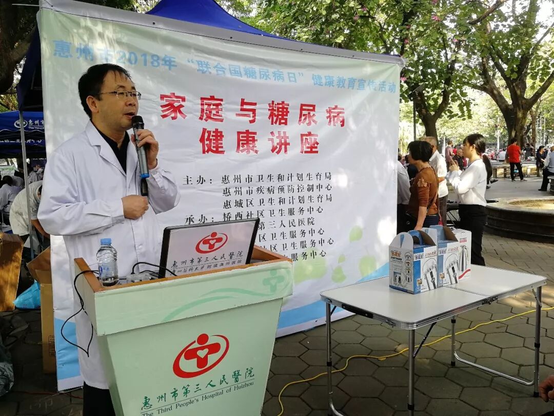 為動(dòng)員全社會(huì)共同關(guān)注糖尿病,提高公眾主動(dòng)防控糖尿病的意識(shí),積極改變不健康的生活方式,提高全民健康水平,2018年11月14日上午,由惠城區(qū)衛(wèi)生和計(jì)劃生育局主辦、橋西社區(qū)衛(wèi)生服務(wù)中心承辦的2018惠州“聯(lián)合國糖尿病日”大型義診宣教公益活動(dòng)在南湖公園舉辦。